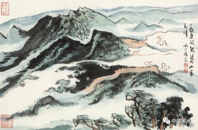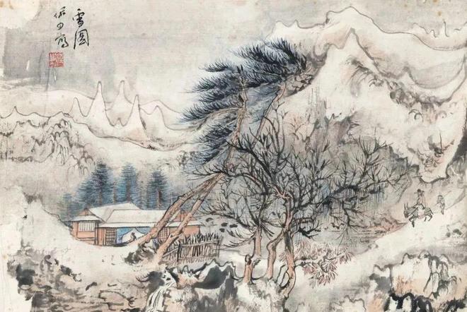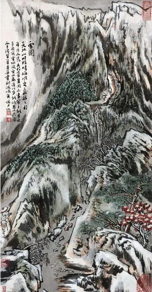 就是人事点缀,以前不过画“雪夜访戴”“骑驴看梅”“拥炉煮酒”等等,而现在是在昆仑山上,冒风雪而筑路,或走险道以运输,或则三冬开河,腊月造田,战天斗地,也都是动的。时代不同了,不能用老套路,必须变,才能描绘出新时代的精神来。