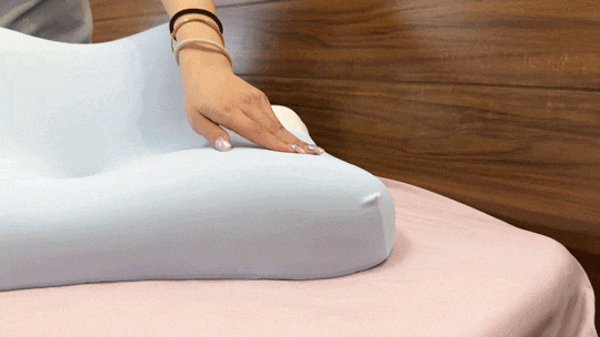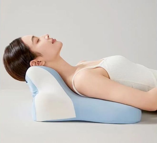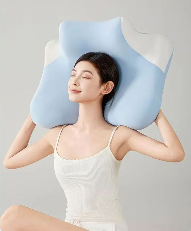 而肩颈部承托区恰好能填补脖子和床之间的空隙,托扶颈椎,让头肩膀两处受力平衡,得到真正放松。