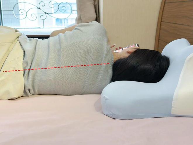 翻过来身直接躺睡也是OK的,枕头中间高两边低,躺下去刚好可以枕在“窝窝”里,让脖颈得到支撑,不会悬在那里。